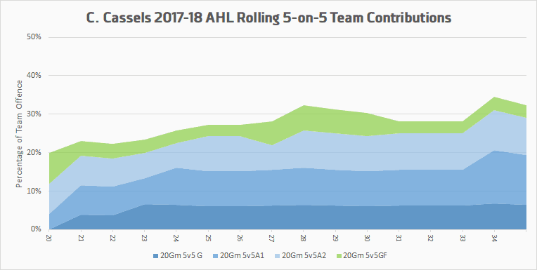 What happens to Cassels next depends on a couple of things. Does his production continue? At this point it seems possible that he could sustain a similar rate as long as he continues to get prime opportunities, both at even strength and on the power play. How do the Canucks value his results in the last month compared to the previous two years of his pro career? Will this hot stretch be enough to warrant him an NHL look? It’s not unlike the hot streak that earned Mike Zalewski a contract and a call up in 2015-16.