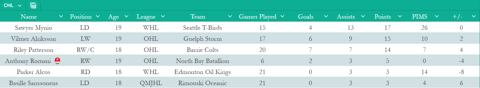 We’ll start our Canadian Hockey League section with Sawyer Mynio, who’s currently out of the lineup with an upper-body injury. Despite sitting on the sidelines, the third-round draftee was named one of Seattle’s two co-captains for the year.