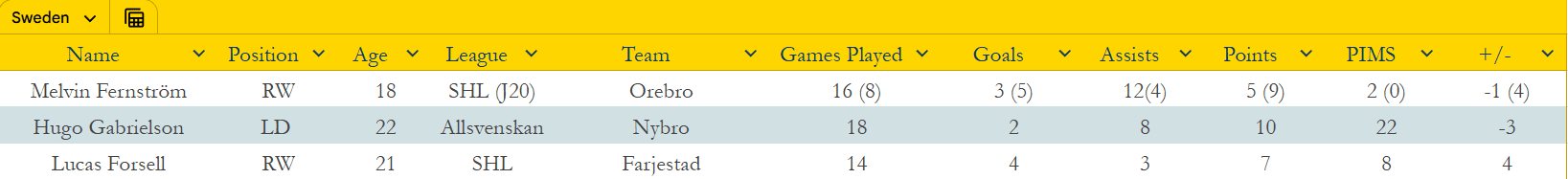 Over in the SHL, Melvin Fernström continues establishing himself as a regular contributor for Örebro’s SHL squad. While he may still enjoy the occasional stint at the U20 level, it feels like he’s solidified his role with the men full-time.