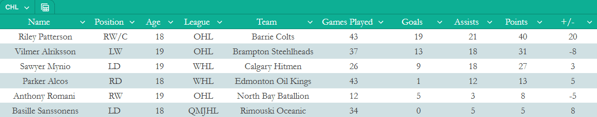 He co-leads the Barrie Colts in both goals (19) and points (40) while playing in all citations for a fourth-ranked OHL team overall. He’s also a plus-20 on the season, for good measure.
