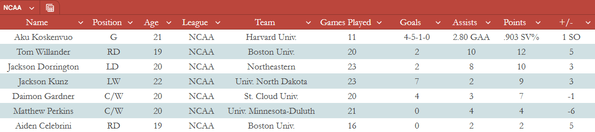 As for Aku, he posted another subpar outing after finally catching some traction with back-to-back wins in last week’s installment. He allowed four goals on 24 shots with a 4-1 loss to Cornell. Given the slip in play, we won’t be shocked to see Harvard’s second netminder get the go for the Beanpot.