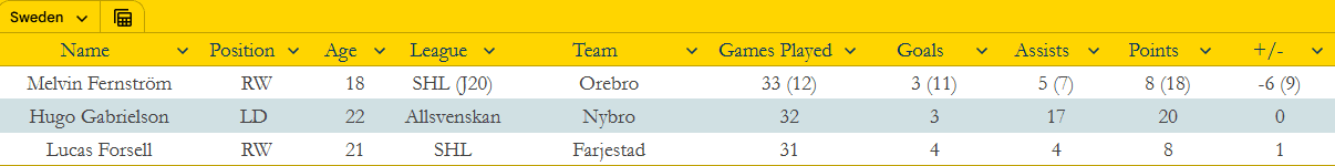 Over in Örebro, Melvin Fernström failed to register any points through two games. He failed to generate any points, but he’s still being well-utilized in the country’s top circuit, enjoying top-six minutes in both games.