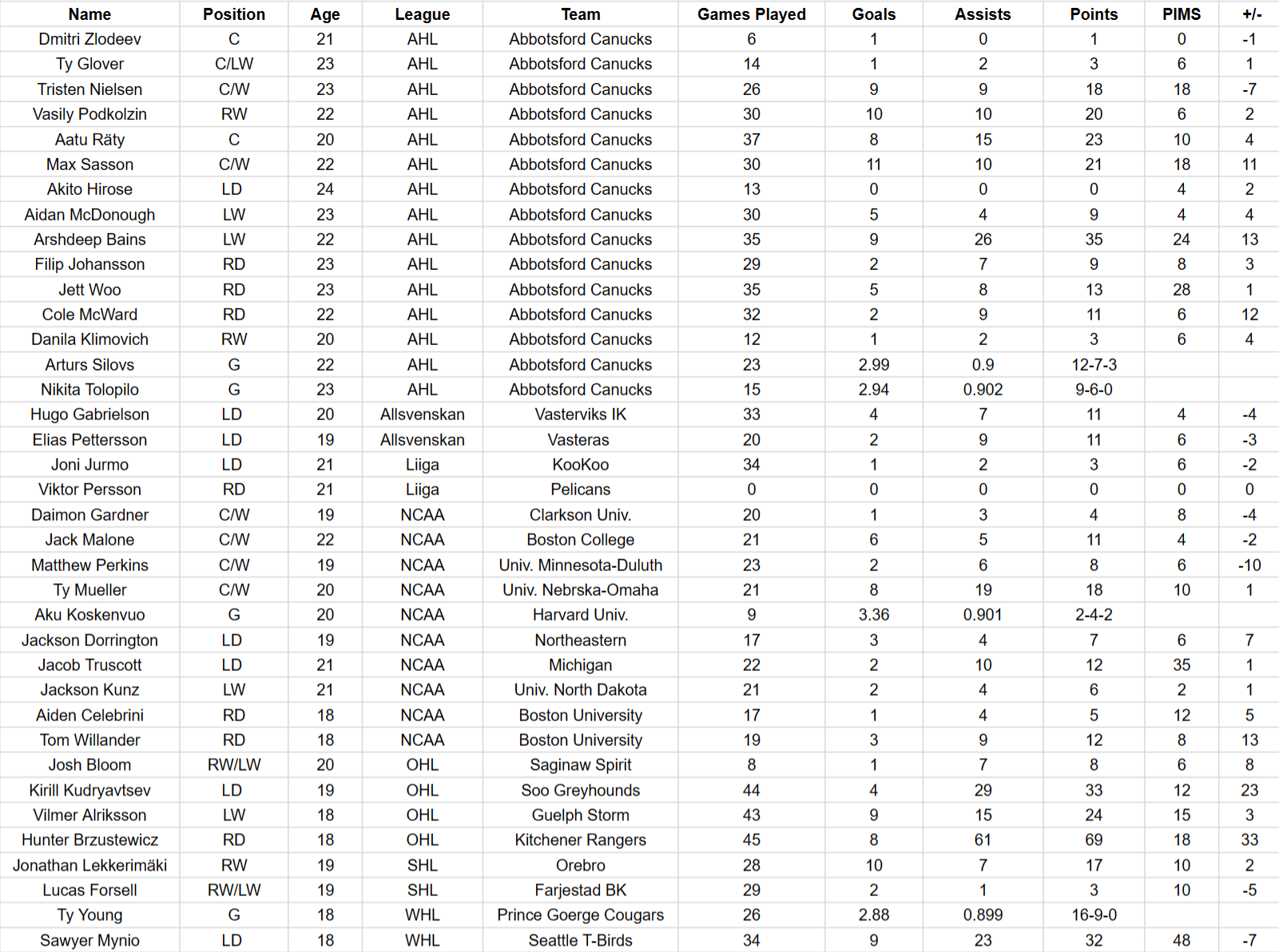 NHL Draft Eligibles. Stay tuned to CanucksArmy for ongoing coverage of prospects in the coming months.
