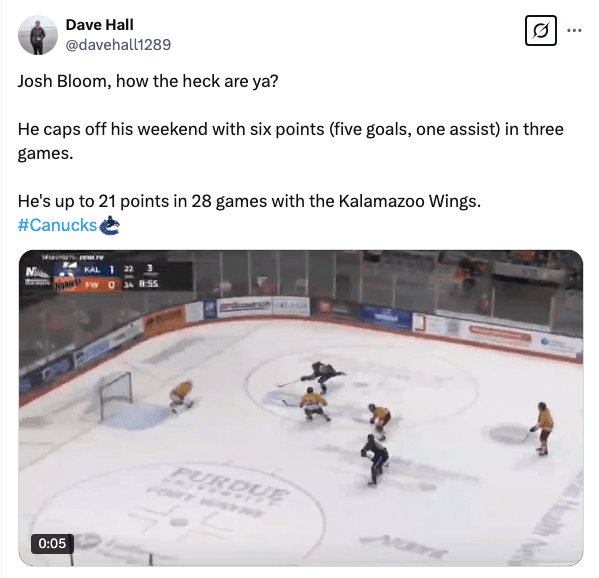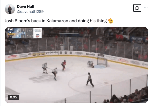 After a two-game stint in Abbotsford (one assist), Josh Bloom was sent back to Kalamazoo ahead of the team’s three-game weekend slate. And boy, did he show up.