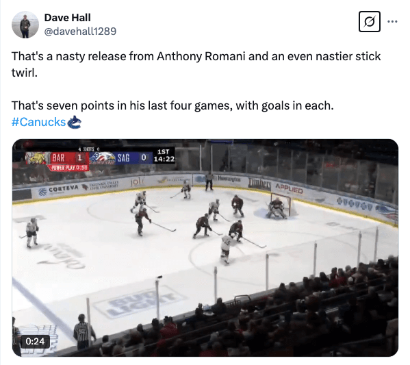 Anthony Romani, who recorded another three goals and four points over three games this week. That’s now goals in five of his last six and 10 points during that span.