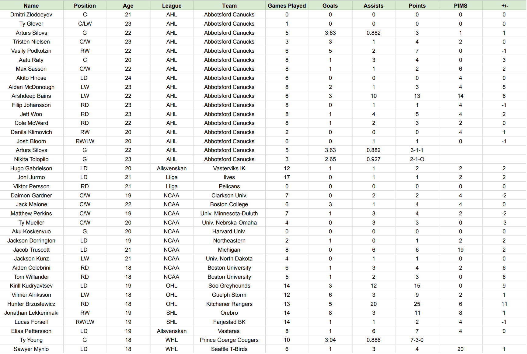 Both Vancouver and Abbotsford sit second among their respective divisions, while the OHL and AHL points leader, along with the SHL’s top goalscorer, are all members of the Canucks’ prospect pipeline.