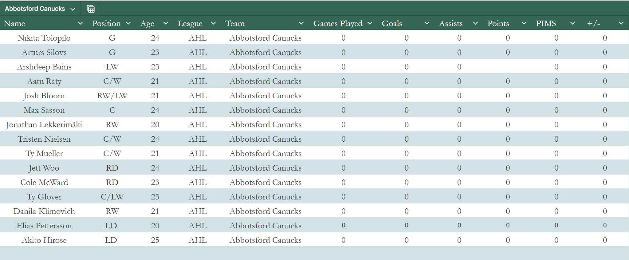 It’s been a few weeks since our last Abbotsford update, but fret not; that all changes next week. Rosters have yet to be announced for the Young Stars Classic, but if you check out our August Blackfish report, you’ll get a good idea of what they could be.