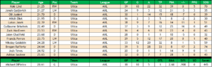 - Jonah Gadjovich scored twice this week giving him 9 goals on the season. He’s riding a 25.7 shooting%.