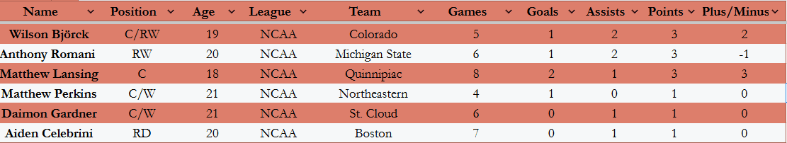 We will get the chance to see if, and how bad, Wilson Björck injury may be. He left last week’s game after taking a hit up high. His Colorado College enjoyed the week off, which may have given him enough time to recover.