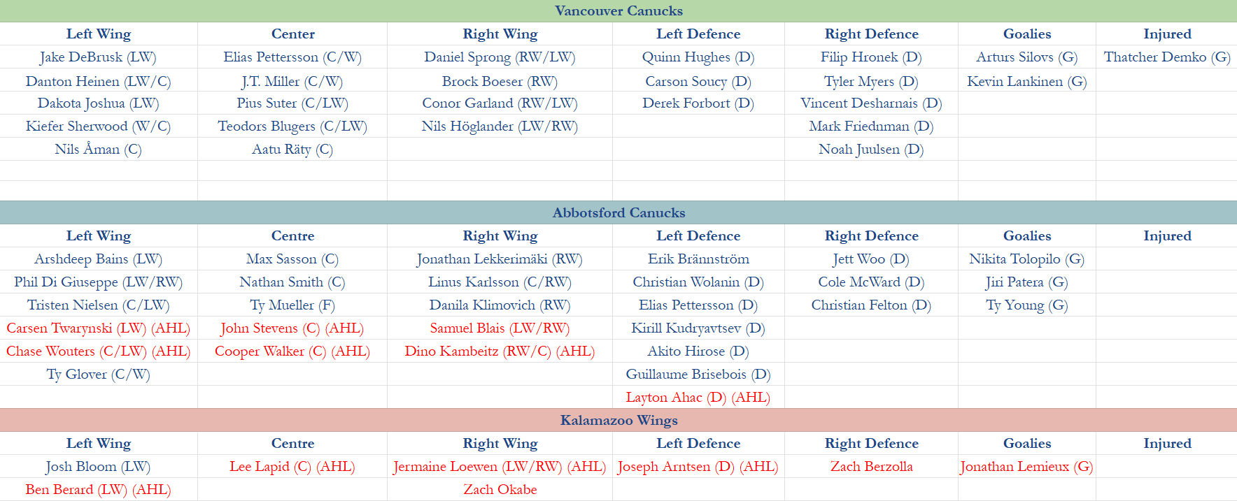 With that, here is how things are shaping up in the system (AHL contracts in red). We anticipate a few more bodies being sent to the ECHL. No, these are not ordered to reflect predicted line combinations.