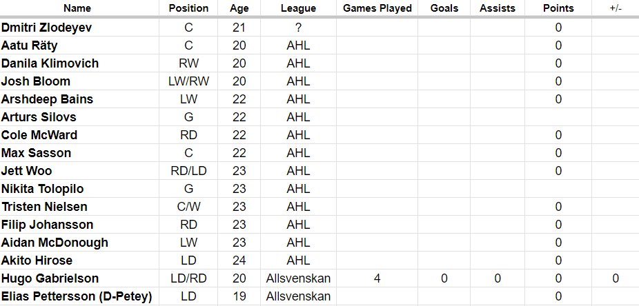 And to close out the AHL stuff, there’s still no news about Dmitry Zlodeyev. He will need an AHL contract to play with Abbotsford or Kalamazoo in the ECHL.