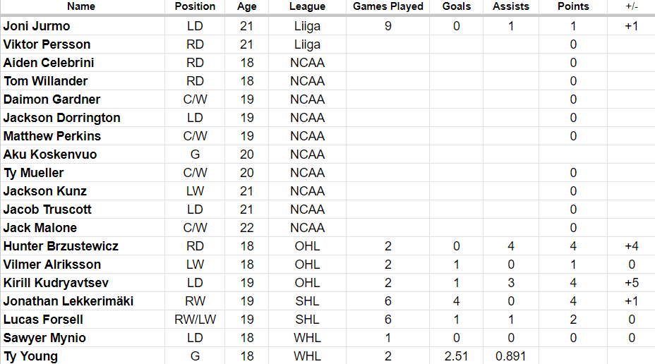 Alright, this is a good section. We had three prospects play in a total of six games and combine for two goals and seven assists.