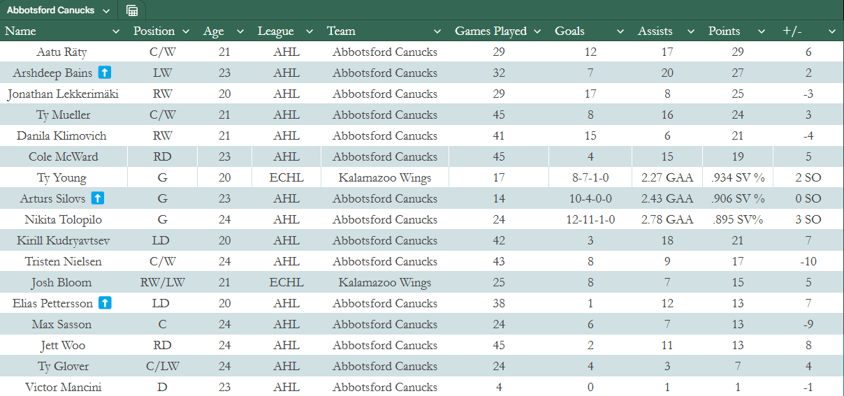 Ty Young was promoted to Abbotsford over the weekend and has been one of the best goaltenders down in the third tier.