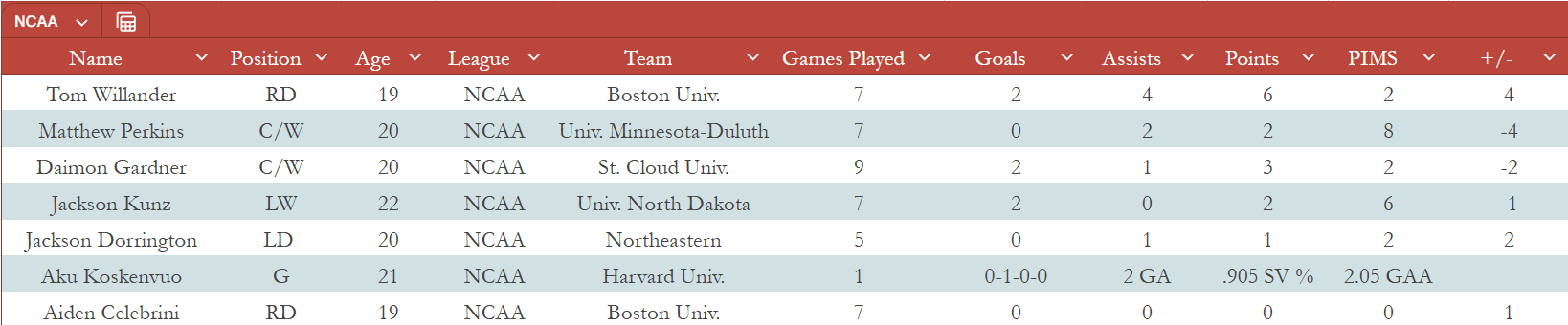 To round things off in Sweden, Hugo Gabrielson kept his strong play going, picking up another two assists for Nybro. The 22-year-old now has six points in his last eight games—steady and reliable production from the Swedish defender.
