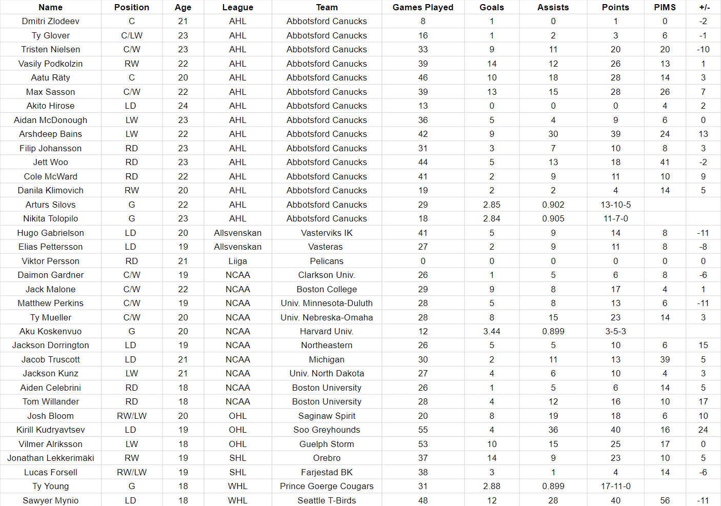 Well, as we mentioned in the report, Elias Pettersson is quite close to being eliminated from playoff contention.