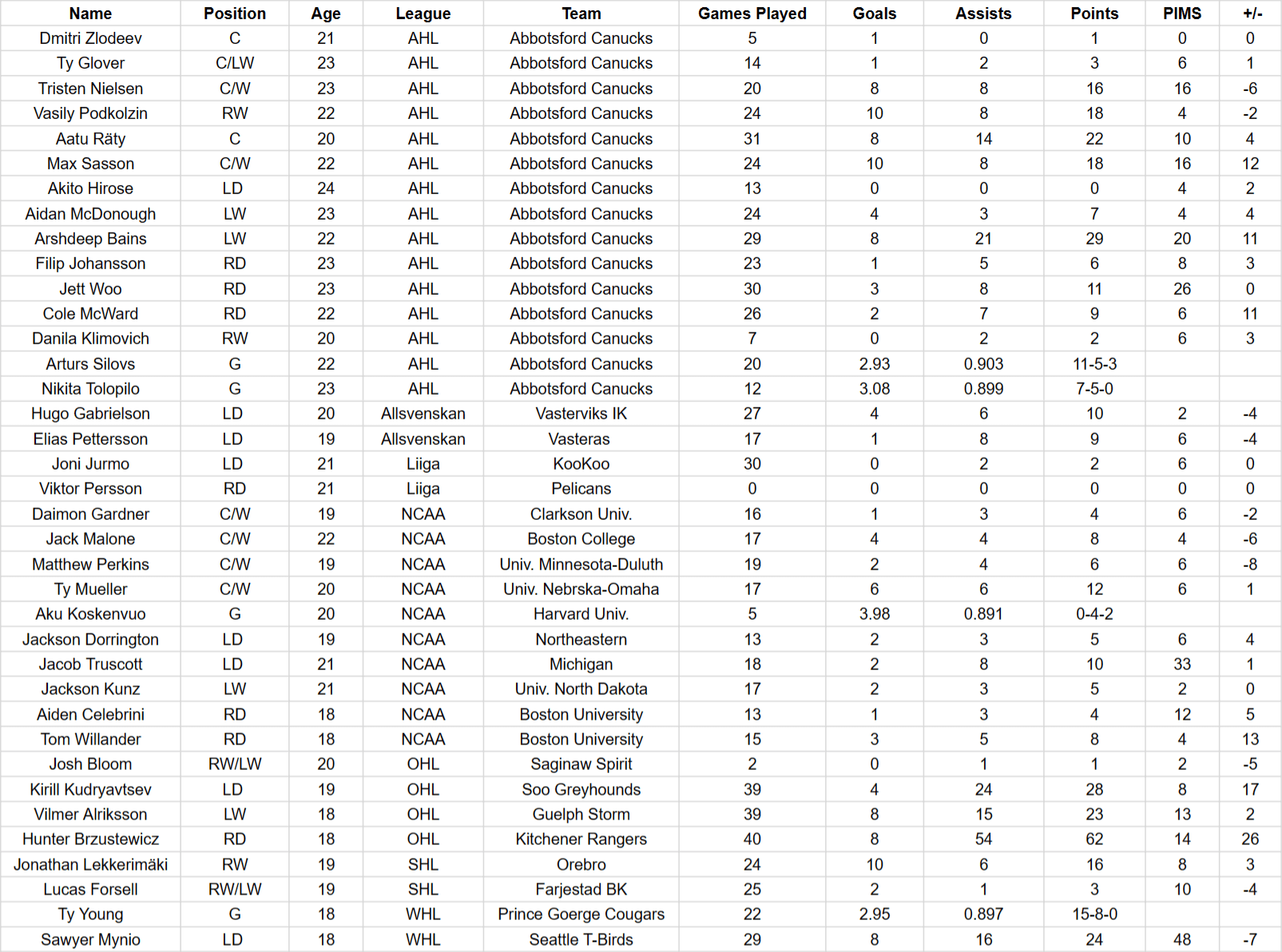 last week’s report, be sure to check it out, as I provided insights into each prospect within the Vancouver Canucks system, excluding the Abbotsford Canucks.