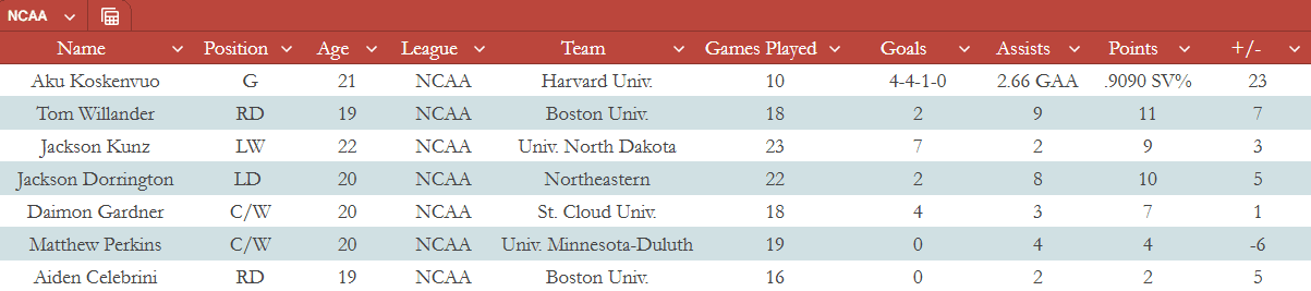 His overall statistics are slightly down, but as we’ve seen over the last few weeks, his game is developing quite nicely and he should be ready for professional employment by the season’s end. The issue? BU is putting up a good case to make a long push in the Frozen Four Championships, which will only extend the time in which he joins the Canucks’ organization – assuming he goes that route.