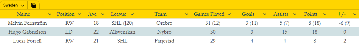 Although they weren’t necessarily “Blackfish worthy,” Melvin Fernström added two assists at the SHL level, bringing his season total to eight points in 31 games. The 18-year-old is holding his own against older competition and currently sits second among 18-year-olds in points.