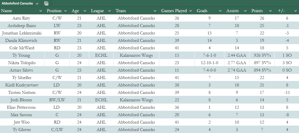 Speaking of points, Kirill Kudryavtsev picked up a secondary assist over the weekend. This assist brought him to 21 points on the year, tying Christian Wolanin for tops among Abbotsford defencemen.