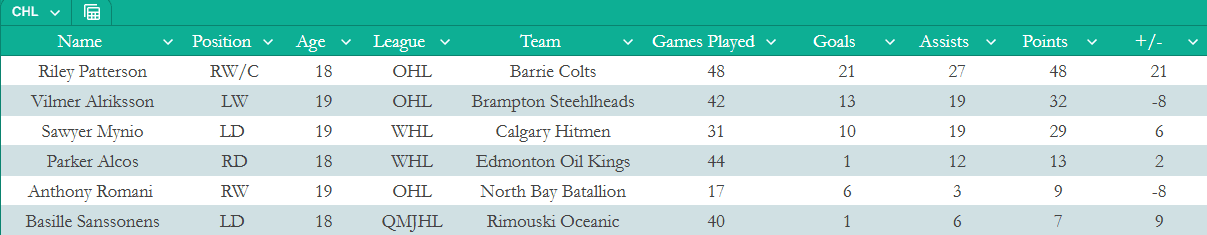 It’s been a slow return for Anthony Romani, who continues to see top-line minutes on that same Barrie Colts team. Since his return from injury, he has just four goals in 11 games and is minus-4.