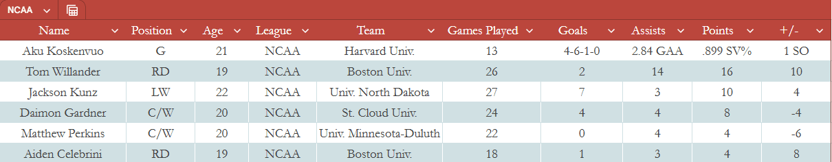 Should they advance to the Frozen Four National Championship, Willander’s college season could extend into mid-April (April 10 & 12).