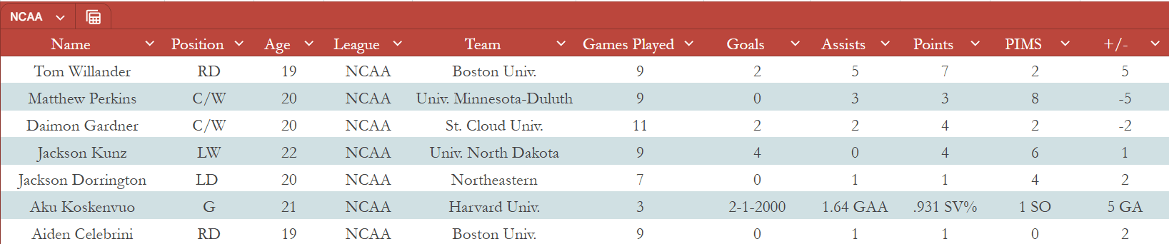 Over in Boston, Tom Willander picked up another primary assist to put him up to five assists and seven points on the year.