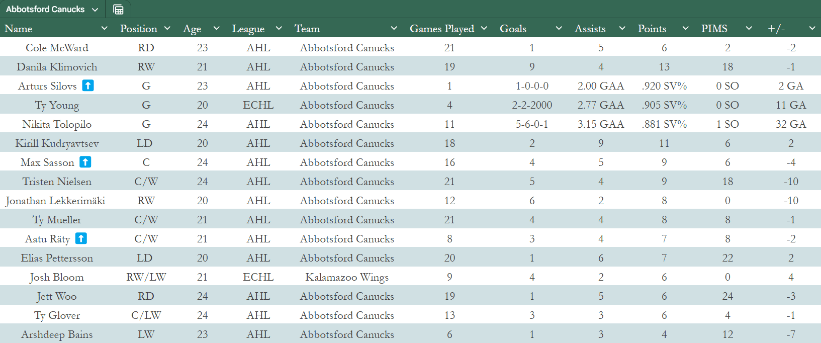 Not to mention, eight of his points (five goals, three assists) have come at even strength, proving he’s not simply feasting on the man advantage. That said, adding him as a shooting threat alongside Jonathan Lekkerimäki on the power play has greatly boosted Abbotsford’s special teams success.