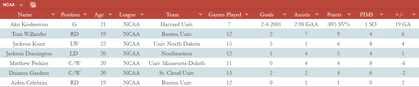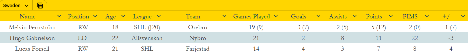 In the J20 league, Fernström is riding a five-game point streak, with five goals and four assists during that span.