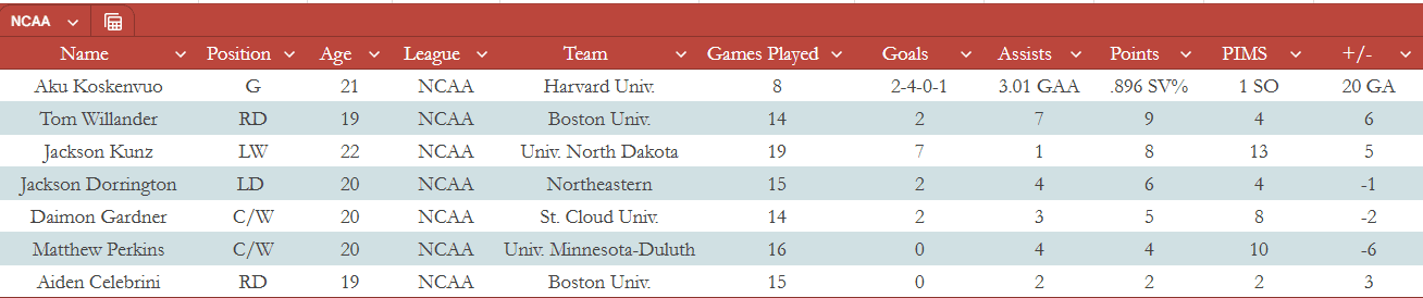 It was winter break at school, so it was a quiet time in the NCAA. However, Jackson Dorrington picked up a couple of assists, including a pretty bank stretch pass.