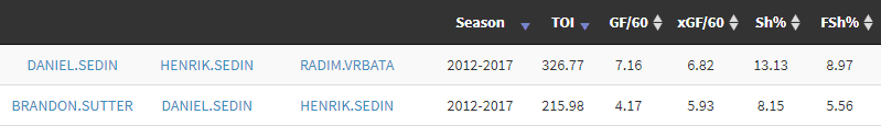 If it was intentional, then I’d have to tip my tap to Green, because here’s the thing: that bit about the Sedin unit being more dangerous according to the numbers, that was present last year too (just in case you were rightly about to cry foul over this small sample).