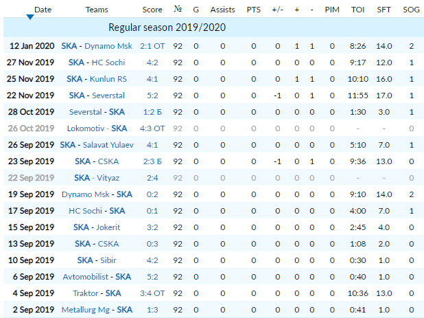Here are Podkolzin’s first 17 games of the 2019-20 season with SKA.