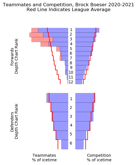 It’s also important to note here that Boeser faced the toughest matchups of his career, and a quality of competition over-and-above the league average for a player of his stature.