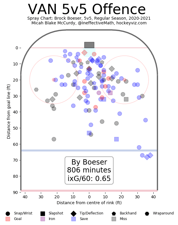 Right off the bat, it’s hard not to frame this season as a major bounceback for Boeser. He scored seven more goals and four more points than he did in 2019/20 while playing one fewer game. Even without context, that’s noteworthy, and we’ve got heaps of context coming to paint an even more impressive picture.