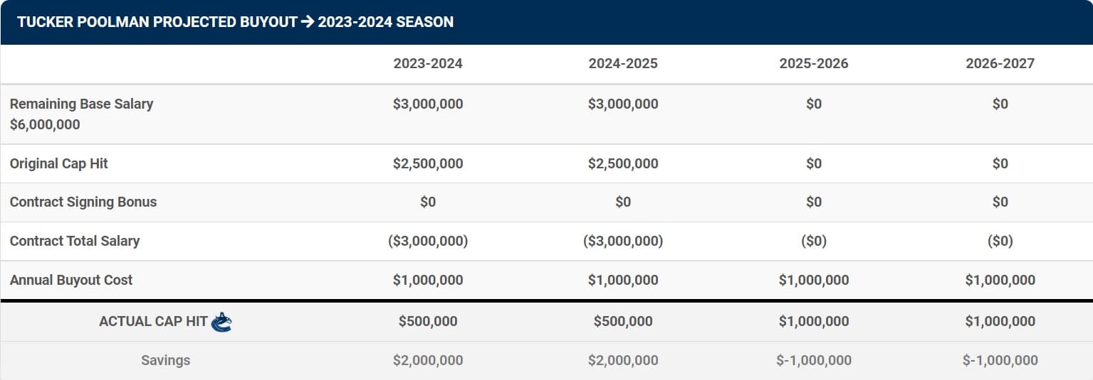 If there’s a single best buyout candidate to be found, it’s not on the Canucks’ active roster. It’s on LTIR, where Poolman remains and has spent the majority of the 2022/23 season. At this point, it’s debateable whether or not Poolman should really be considered a full-time NHL defender, and it seems highly likely that his ongoing injury concerns will prevent him from ever returning to form.