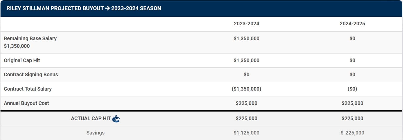 If they do decide to buyout Stillman, they can do so almost consequence-free. Because he’d still be under the age of 26, Stillman only has a 33% buyout modifier, meaning buyout penalties of just $225K for the next two seasons. That’s a savings of $1.25 million in 2023/24 and less than a quarter million on the books the season after.