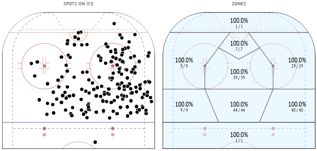 He’s capable of generating offence from virtually anywhere on the ice, and his shot chart is one of the busiest you’ll see from a defender.