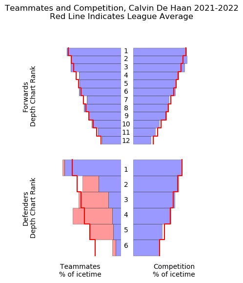 For a player stuck on one of the worst teams in the league (Chicago allowed the seventh-most goals against overall last season) de Haan’s almost-at-break-even metrics are, if not impressive, at least worthy of consideration.