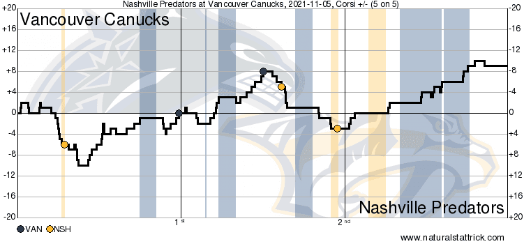 The Canucks controlled the zone for the second half of the power play, and once the Nashville penalty expired, they kept it up.