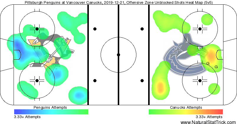 That heat map above looks like the Zamboni missed a few spots in the Canucks offensive zone.