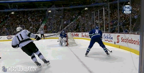 .. you can tell where this is headed, can’t you? I’ll lump the two following plays into one, because they both involve a brutal gaffe by a Canucks defenseman. On the game tying goal by Mike Richards, Alex Edler decides to go and attempt a bone-crunching hit for some unreason completely unbeknownst to me. Then, Kevin Bieksa Bieksa’d the play in Overtime, leading to the winner by Anze Kopitar, and a massive black eye to the Vancouver Canucks franchise.