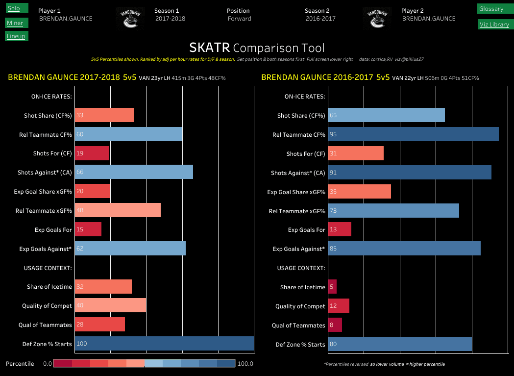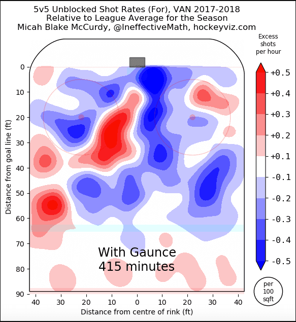 It may come as a surprise, but in 2016-17 Gaunce posted the third and seventh best on-ice rates among Canucks’ forwards for shots and scoring chances generated respectively.