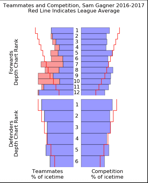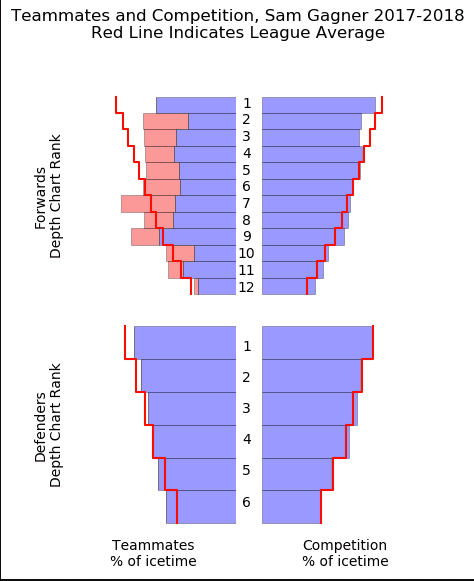 This year, injuries and a lack of scoring depth caused Gagner’s role to fluctuate throughout the year to fit in line with the team’s needs. That meant a slight uptick in even-strength, but more importantly, tougher quality of competition.