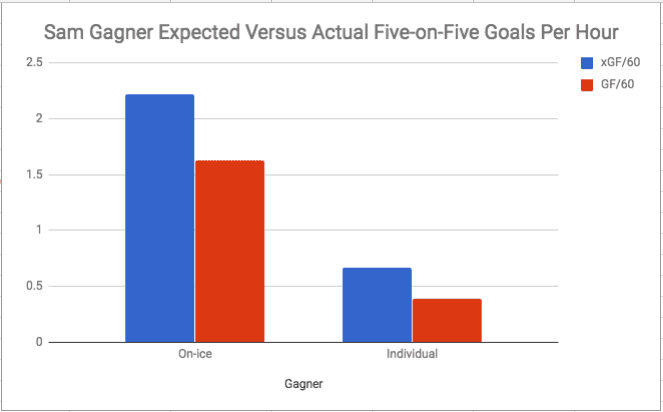 One area where luck may have played a part was with Gagner’s middling counting stats, many of which appear to have been hurt by below average individual and on-ice shooting percentages.