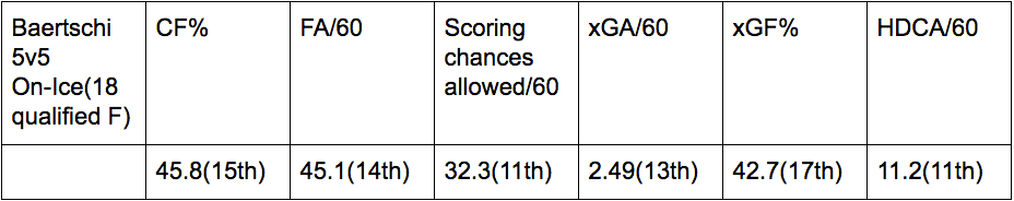 A deeper look into the underlying numbers only exposed the holes in Baertschi’s performance this year. He struggled in creating offensive chances and had a negative effect on his teammates’ ability to control possession to go along with deteriorating defensive play.