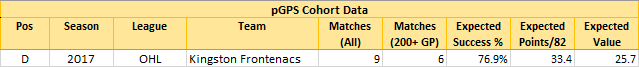 When we view Studnicka’s season through the pGPS lens, it becomes apparent that he’s an uphill battle if he’s to carve out a full-time NHL career. Just under 20% of players in his cohort of went on to become successful NHL’ers and they generally produced about 36 points per 82 game season.