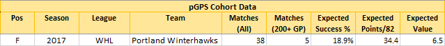 When we look at Tyszka’s statistical profile, there’s a lot to like. Considering he didn’t play a tonne of minutes at even strength, I find his 25 points (six goals and 19 assists) in 54 games encouraging. You combine that with NHL height and the fact that he’s putting up those numbers in a league that just churns out defenceman, and pGPS is a definite believer. Roughly 30% of the players in Tyszka’s cohort went on to become full-time NHL’ers, and they generally developed into second pair defencemen when they did. Players like Brayden McNabb and Travis Hamonic check out as current players with the highest degree of similarity to Tyszka among successful members of his cohort.