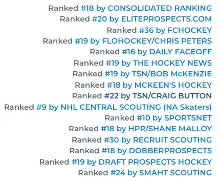 Corey Pronman, The Athletic: “There is a lot to dream on in Honzek’s game and “upside” is often the word used among scouts when discussing Honzek. A true believer can look at him and wonder if he can turn into Roope Hintz one day, with his near 6-4 frame, powerful skating, and skill. That level of offense hasn’t been there in his game consistently, but it’s still been good, and there is a realistic path for him to become a very good NHL player.”
