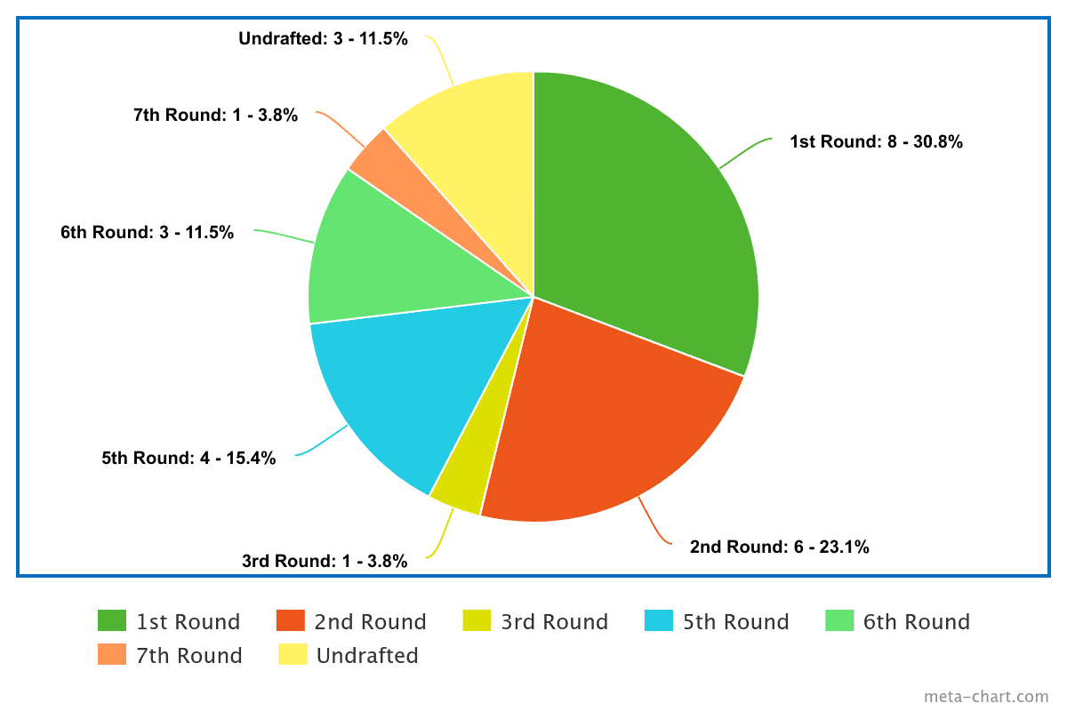 The rest of the roster seems to be a fairly equal blend of picks from later in the draft, and players who were never actually drafted would seem to point in the direction of those who believe that everything beyond the second round is essentially a crapshoot.