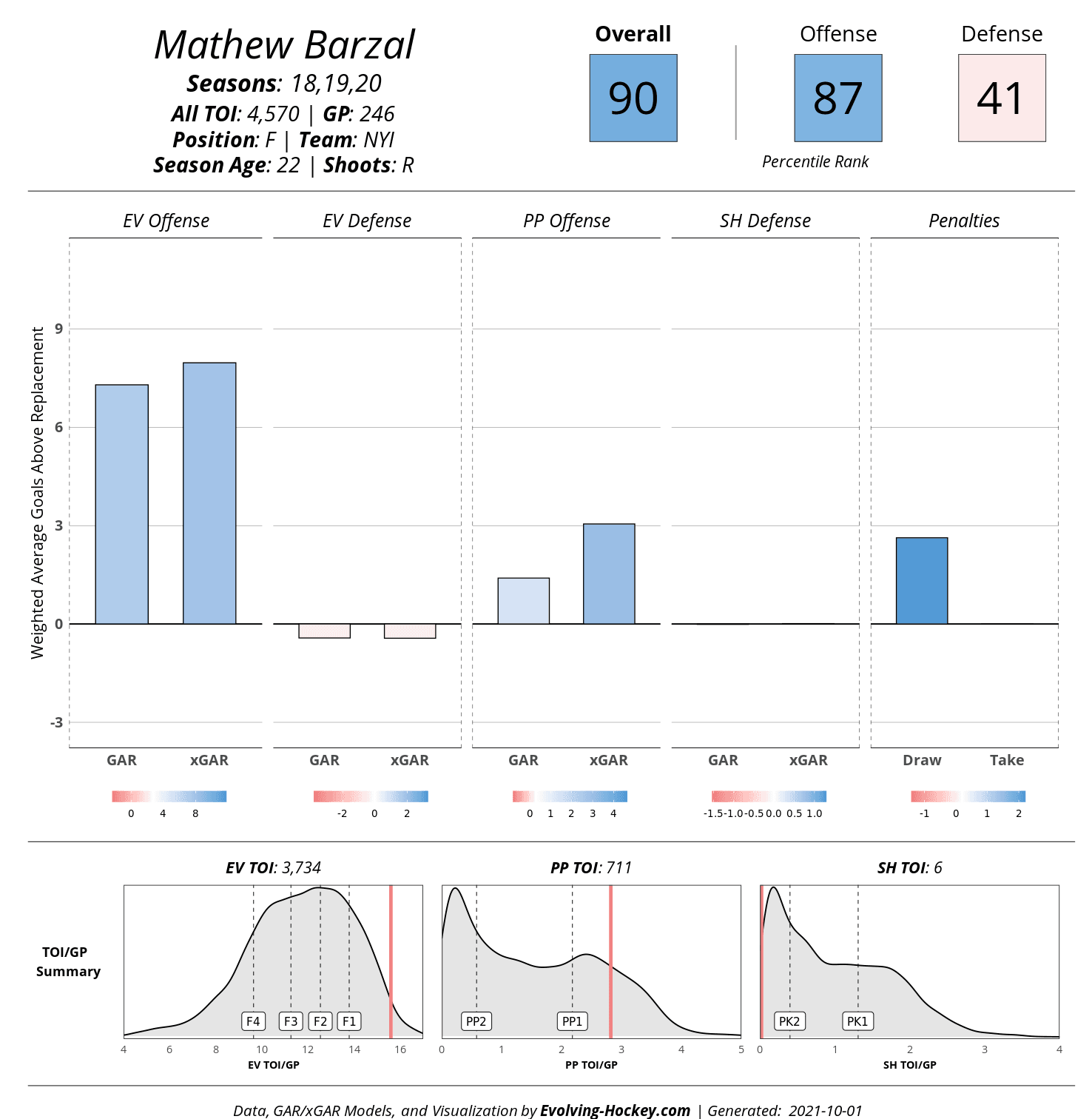 The other main comparable would be Barzal with the Islanders. Both Pettersson and Barzal are near point-per-game players and have been steady throughout their first few years in the league, though Barzal struggled more defensively on his rookie contract: