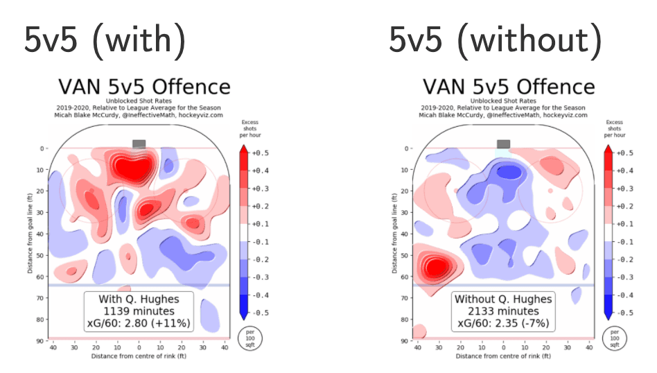If you’re still not convinced, take a look at Hughes’ on/off numbers with the Canucks.